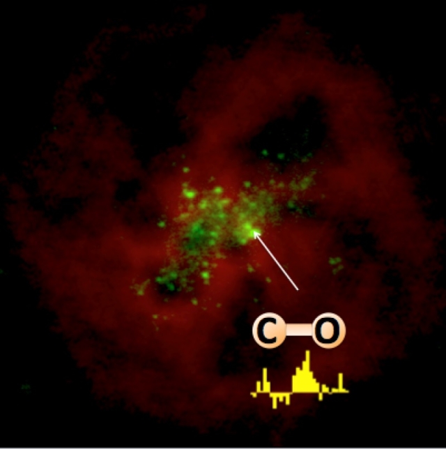 Detecting carbon monoxide (CO) is crucial for seeking evidence of the presence of molecular gas. Although the main elements of molecular gas are hydrogen molecules and helium atoms, they have no electromagnetic radiation that is astronomically observable.