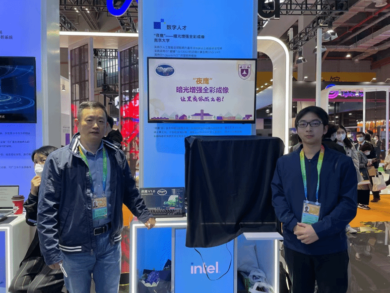 The NJU team of the “Nighthawk: Low-Light Enhancement Full-Color Video Imaging” Project, which wins the global grand prize at the recent Intel AI Global Impact Festival, was invited to participate in the expo. The team is supervised by Professor Peng Chenglei from the School of Electronic Science and Engineering.