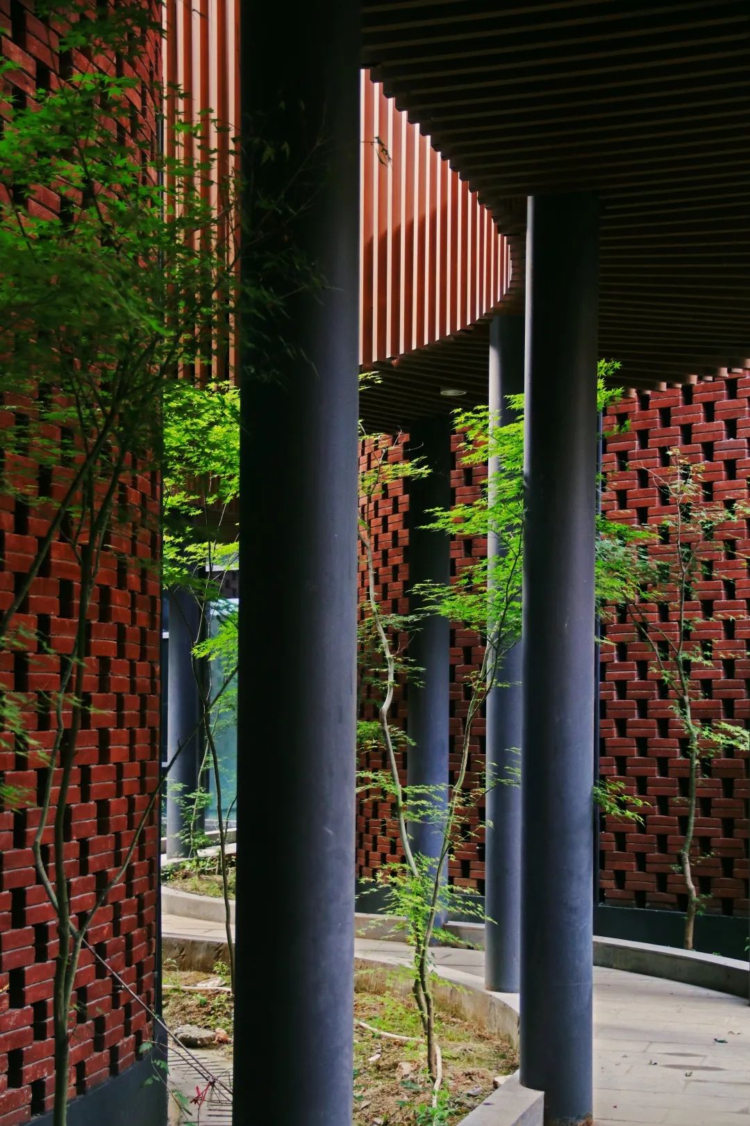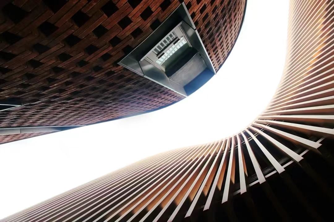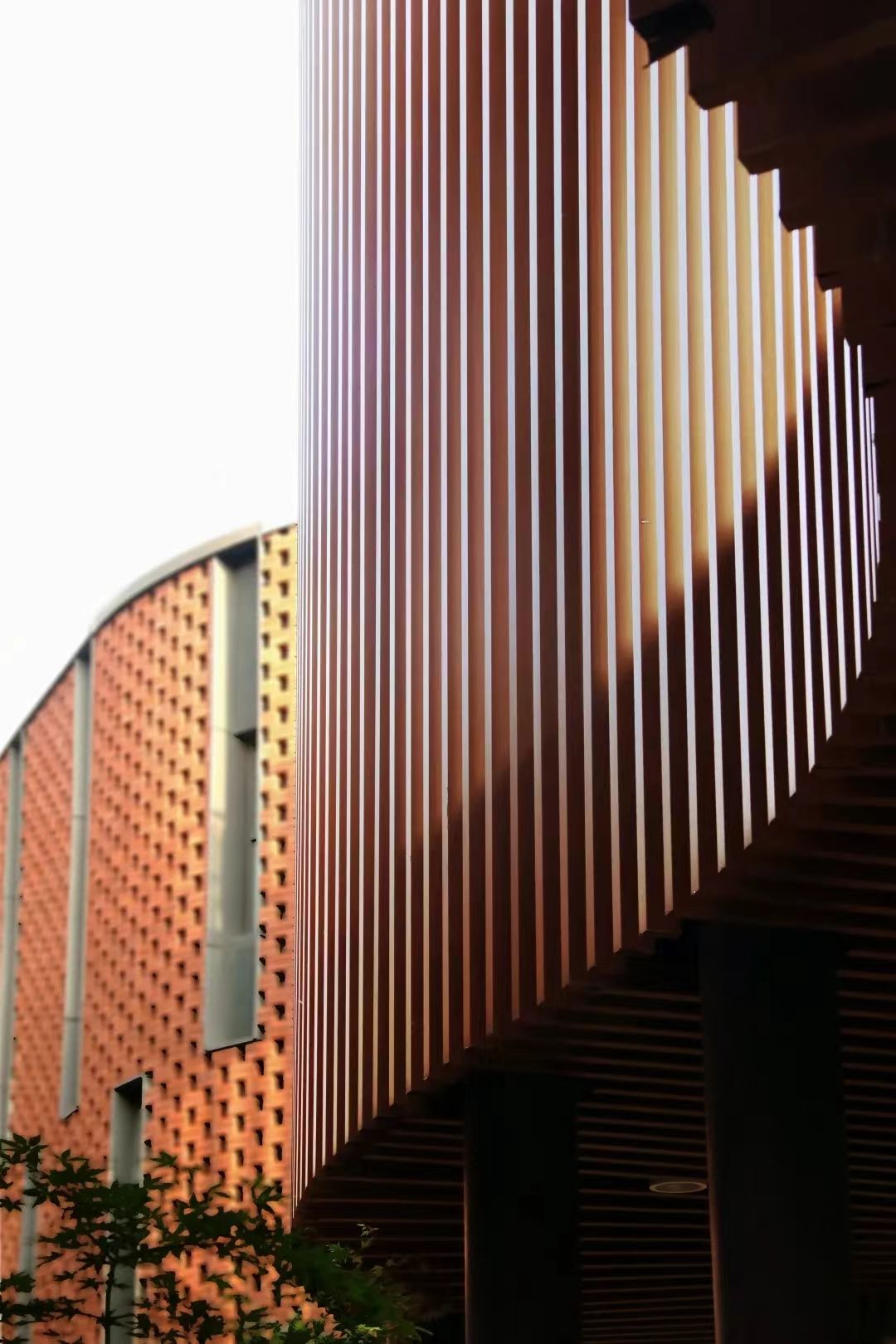 The architecture of School of Journalism and Communication is mostly curved and gridded.