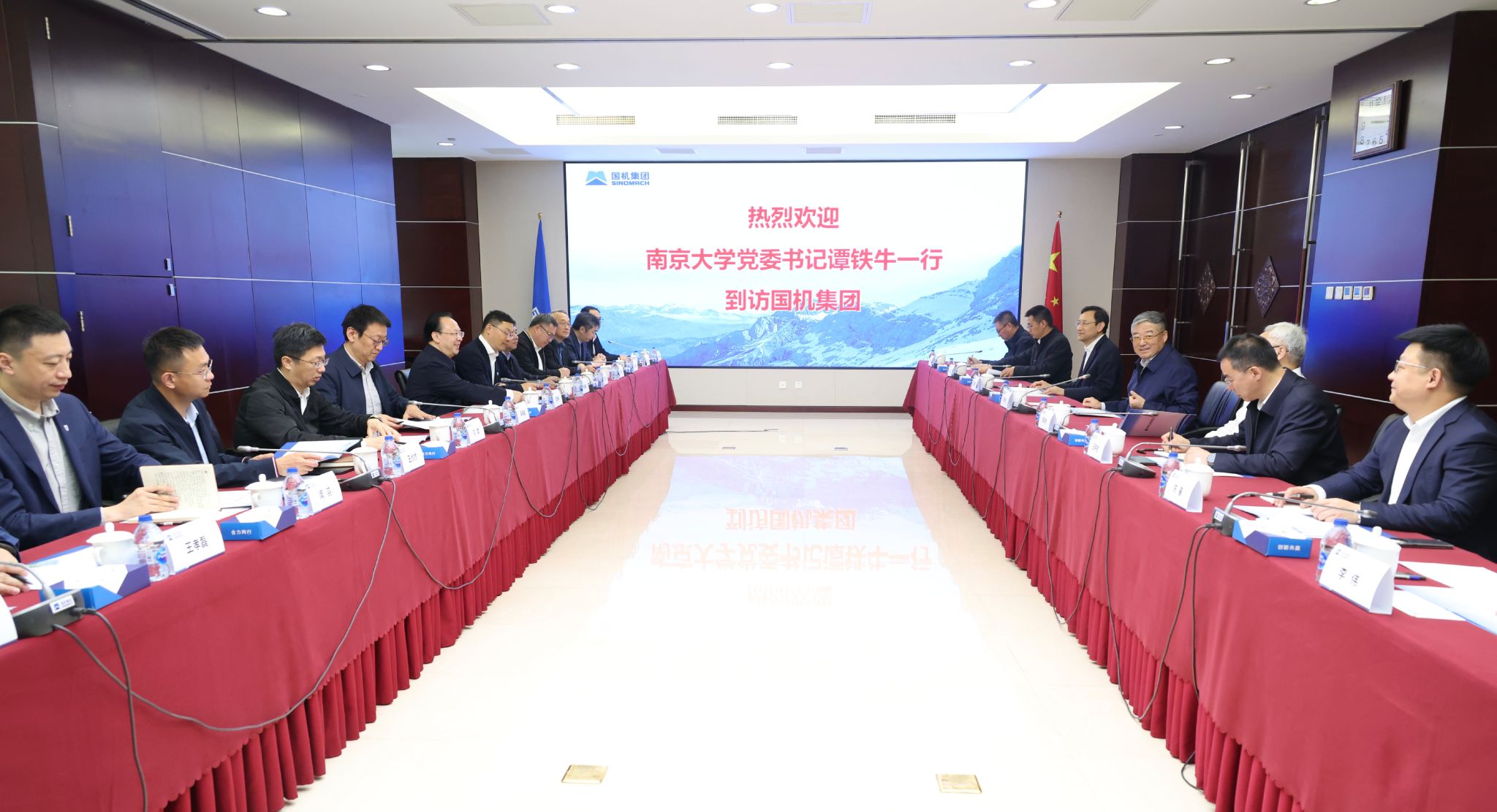 On April 21, Tan Tieniu, Chair of NJU CPC Council and Academician of the Chinese Academy of Sciences, led a delegation to China National Machinery Industry Corporation (Sinomach) and attended a symposium to discuss strategic cooperation and innovative development between NJU and Sinomach. Zhang Xiaolun, Party Secretary and Chairman of Sinomach, presided over the meeting.