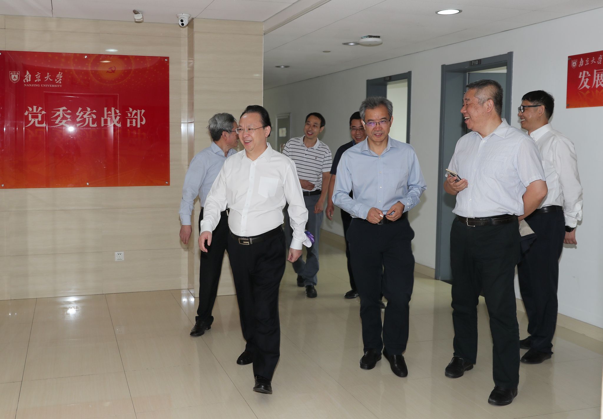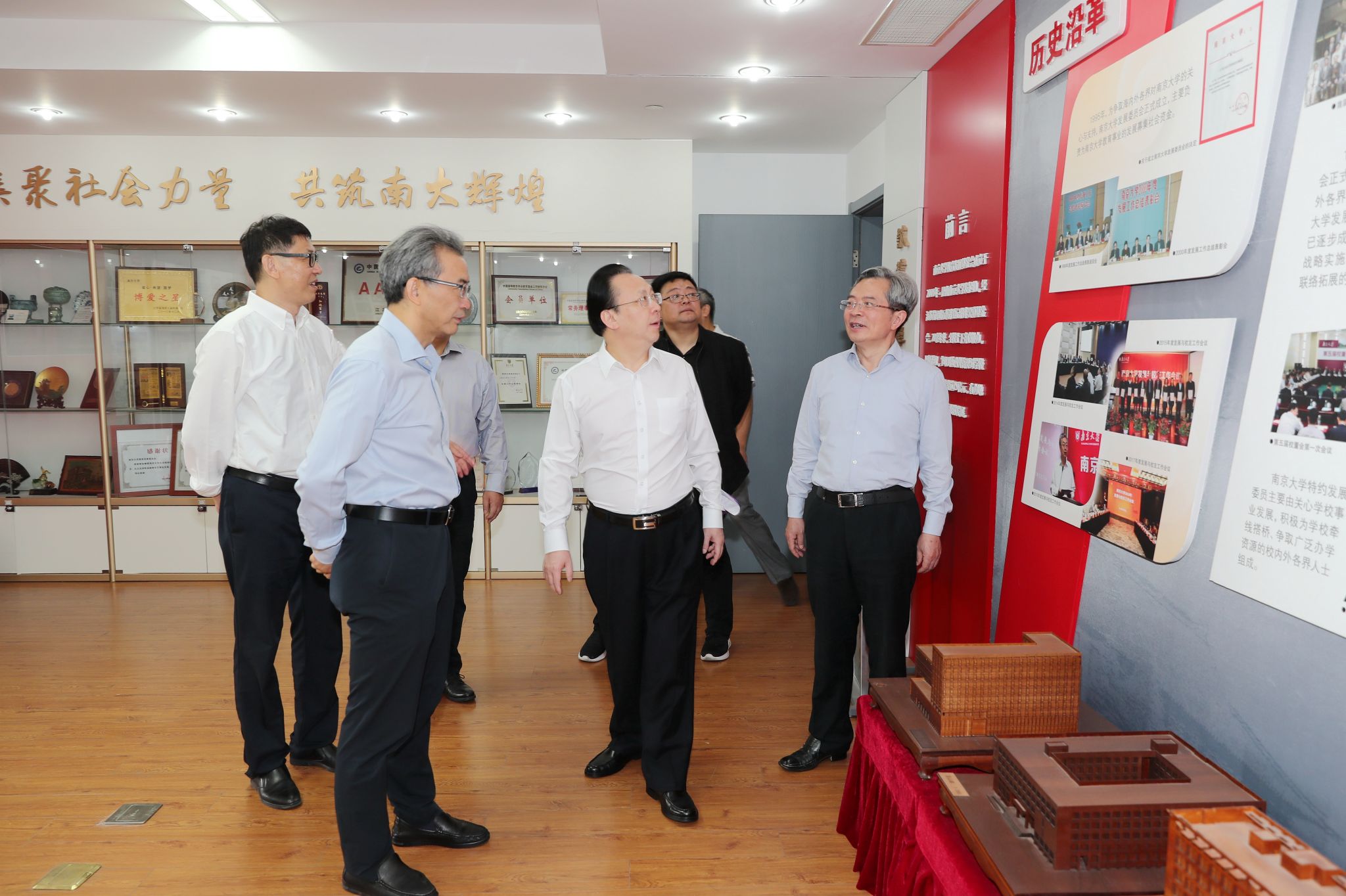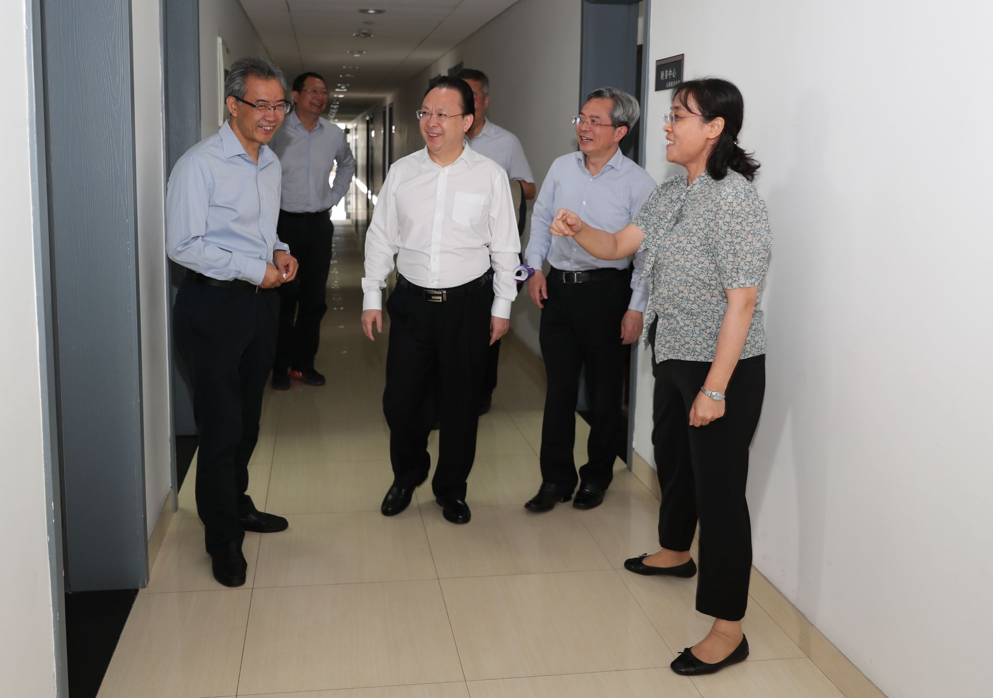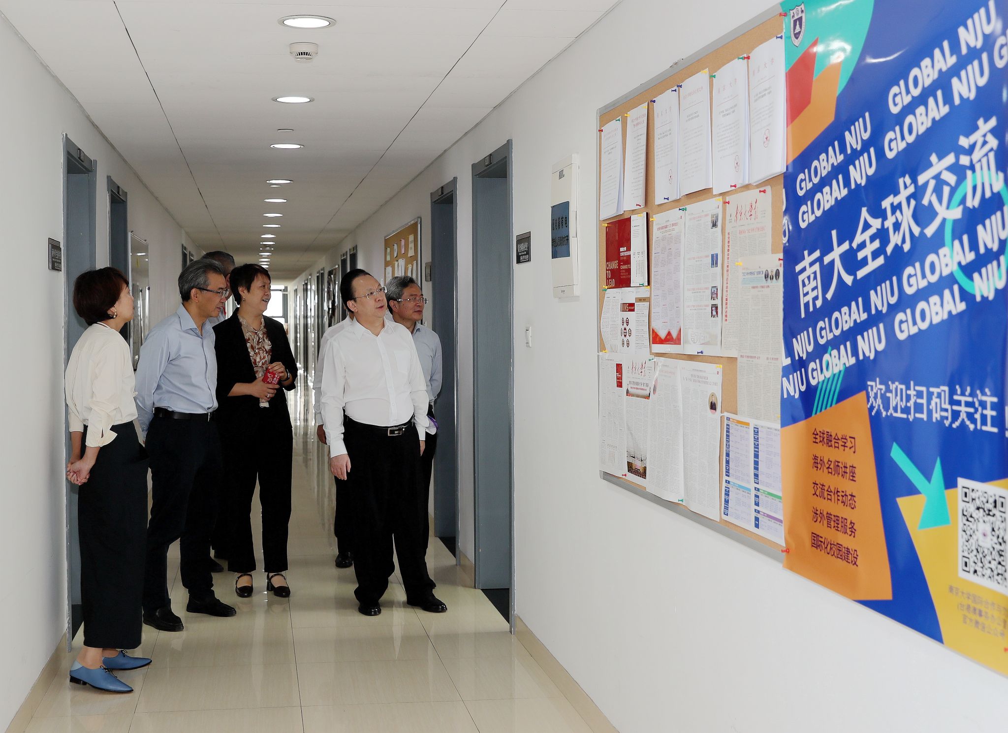 On the morning of September 26, Tan Tieniu, Secretary of CPC NJU Committee, visited Yangzhou Building (North Administrative Building) and engaged in friendly exchanges with the personnel working there. Deputy Secretary Yang Zhong and Executive Vice President Tan Zhemin accompanied him during the visit.