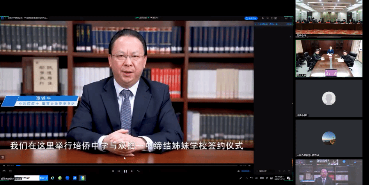 To enhance the assistance and support in education in underdeveloped regions, NJU actively promotes a sister school partnership between No. 1 High School of Shuangbai in Yunnan Province and Pui Kiu Middle School in Hong Kong Special Administrative Region. On the afternoon of December 12, the online signing ceremony of a sister school partnership between the two schools was held simultaneously in Nanjing, Chuxiong and Hong Kong.