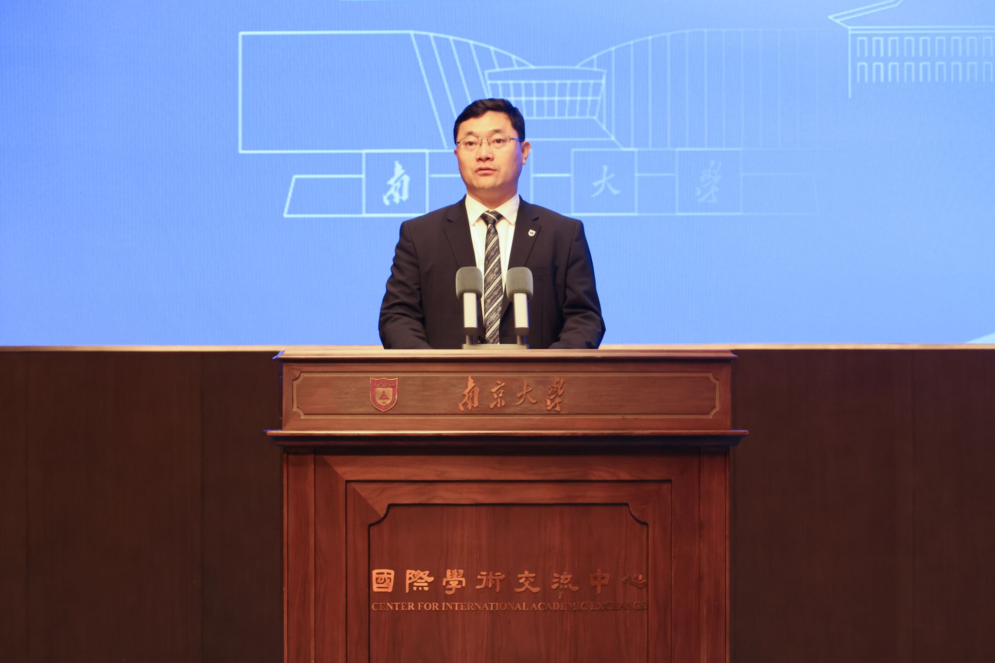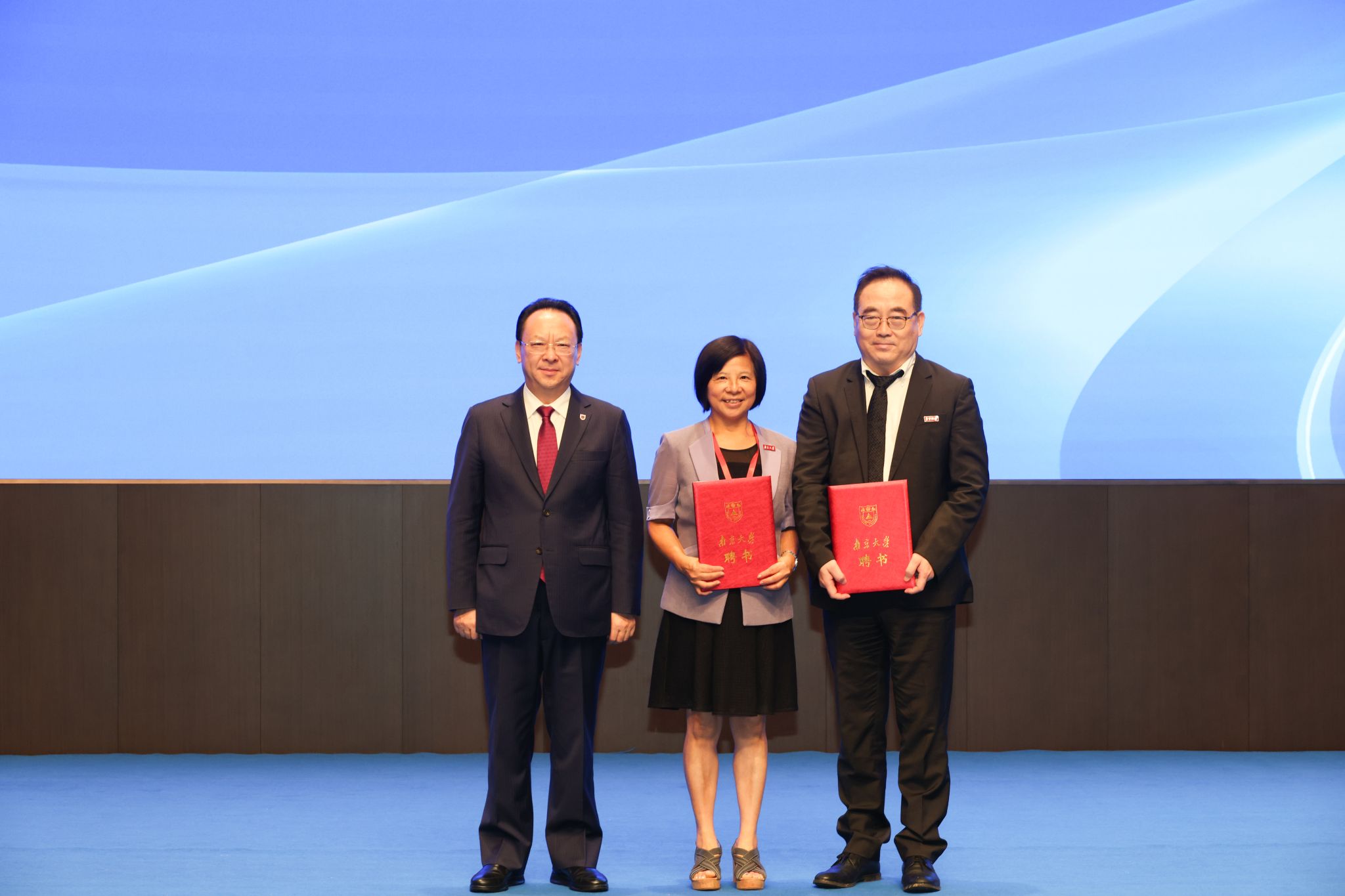 During the opening ceremony, Tan Tieniu presented certificates and emblems of NJU to Zhao Xudong and Wen Xiaoling, Fellows of the Royal Academy of Engineering, who were appointed Distinguished Visiting Professors at Nanjing University.