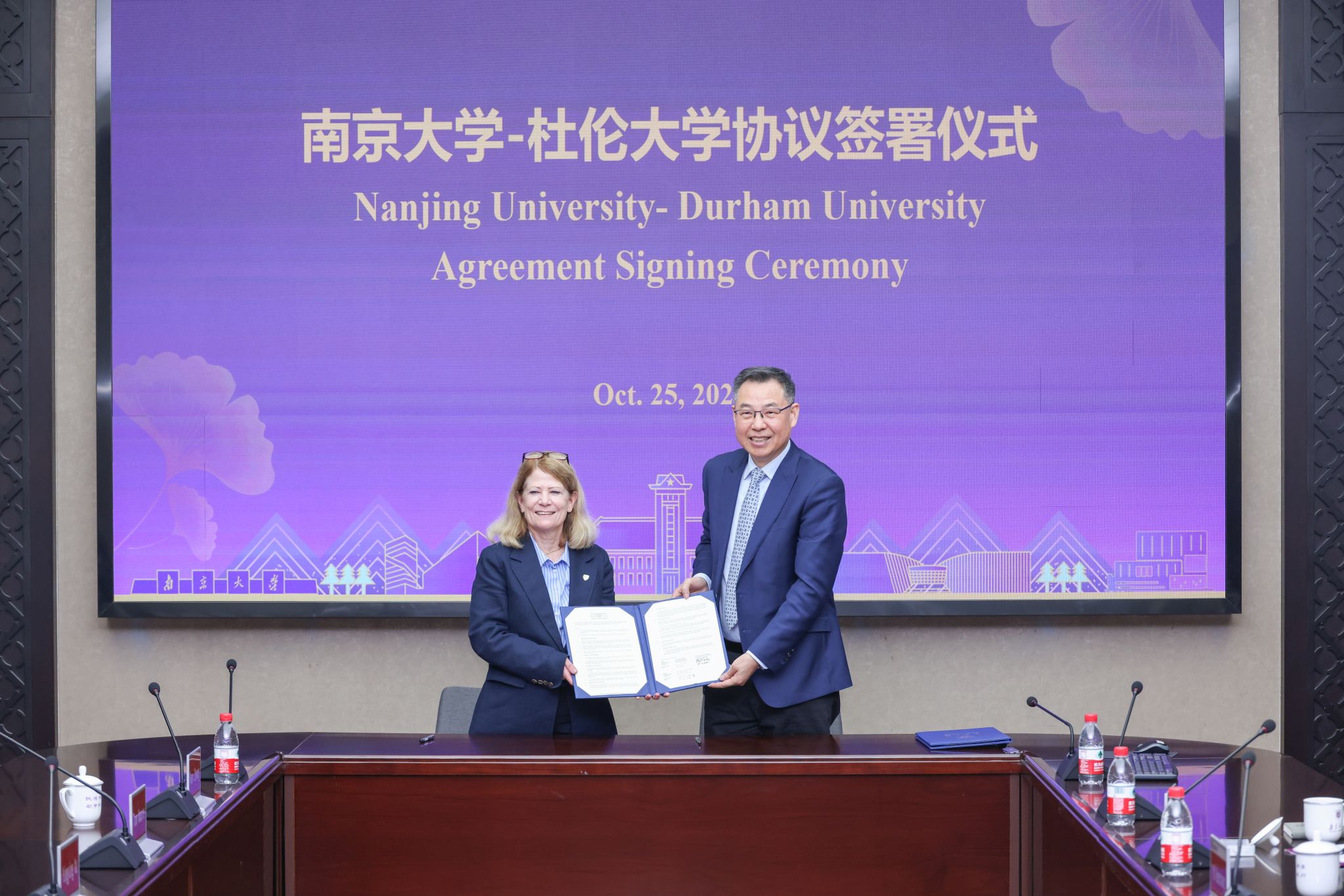 On October 25, Wang Zhenlin, Vice President of NJU, met with Claire O’Malley, Vice Pro-Vice-Chancellor of Durham University, and her delegation. The two sides signed a student exchange agreement.