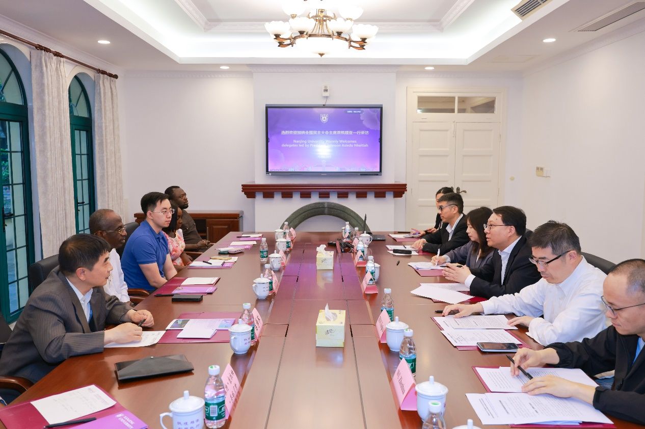 Chen Yunsong extended a warm welcome to Nketia's delegation on behalf of NJU, and provided an overview of the university. He highlighted NJU's profound tradition of student exchanges and its substantial research achievements in African Studies. In terms of future collaboration with Ghana, NJU will promote student exchanges and cultural exchanges drawing on NJU's inclusive atmosphere and academic strengths. Besides, NJU will strengthen joint research on African socio-economic development, particularly in fields like resources and the environment, and establish collaborative research platforms.