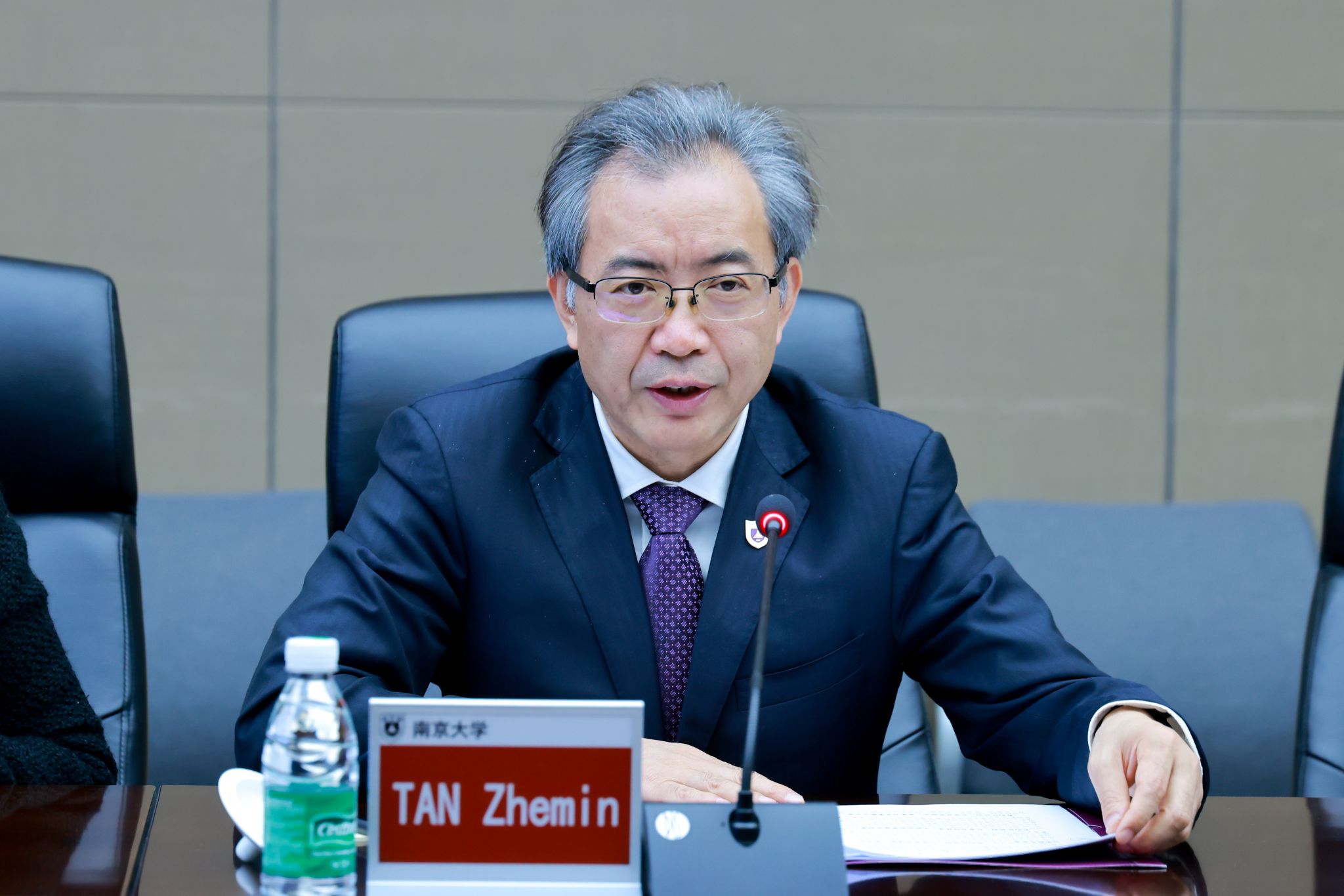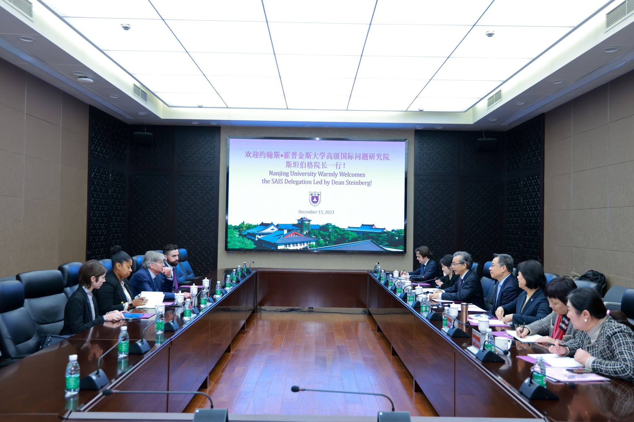On behalf of Nanjing University, President Tan welcomed Dean Steinberg and his delegation and revisited the history and current development of the Hopkins-Nanjing Center. He pointed out that Nanjing University and Johns Hopkins University have always adhered to the original intention of seeking common ground while shelving differences, promoted mutual learning and open exchange of ideas, and worked towards forging a common path. The center’s philosophies of “bridging languages, cultures, disciplines and borders” and “learning, living, growing and developing together” enable teachers and students from China, the United States and other countries with different growth experiences and educational backgrounds to communicate, make friends, and build heartfelt relationships based on mutual respect. Facing a challenging global future, President Tan hopes that the two universities will deepen cooperation, enhance the platform effectiveness and international influence of the Hopkins-Nanjing Center, expand support resources and areas of cooperation, and work together for the prosperity of Sino-U.S. cultural and educational exchange.