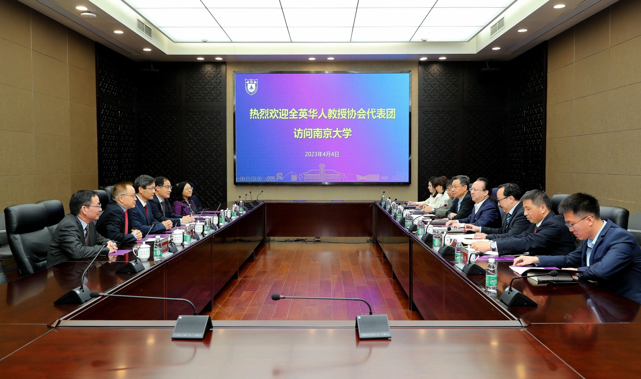 On April 4, a delegation of the Association of British Chinese Professors (ABCP) visited NJU. Tan Tieniu, Academician of CAS and Secretary of the CPC NJU Committee, received the delegation at Xianlin campus. The delegation was composed of Prof. Zhao Hua from Brunel University London, Prof. Ma Daqing from Imperial College London, Prof. Dong Hongbiao from the University of Leicester, Prof. Huang Qihai from the University of Huddersfield, Prof. Xu Hongming from the University of Birmingham, and Prof. Song Jiwen from the University of Leeds. Wang Zhenlin, Vice President of NJU, presided over the meeting. Plans for cooperation were discussed.