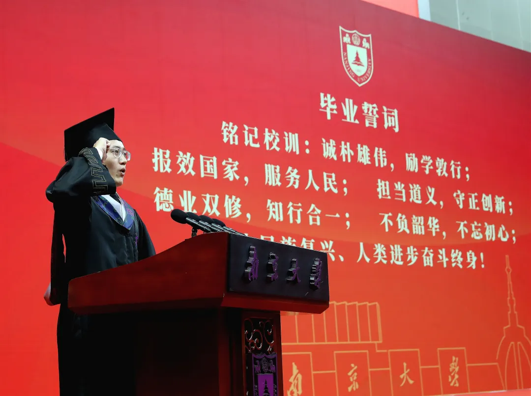 All graduates solemnly pledged to strive for national rejuvenation and human progress for life. After the oath, all teachers and students sang the School song, wishing for a brighter future for Nanjing University.