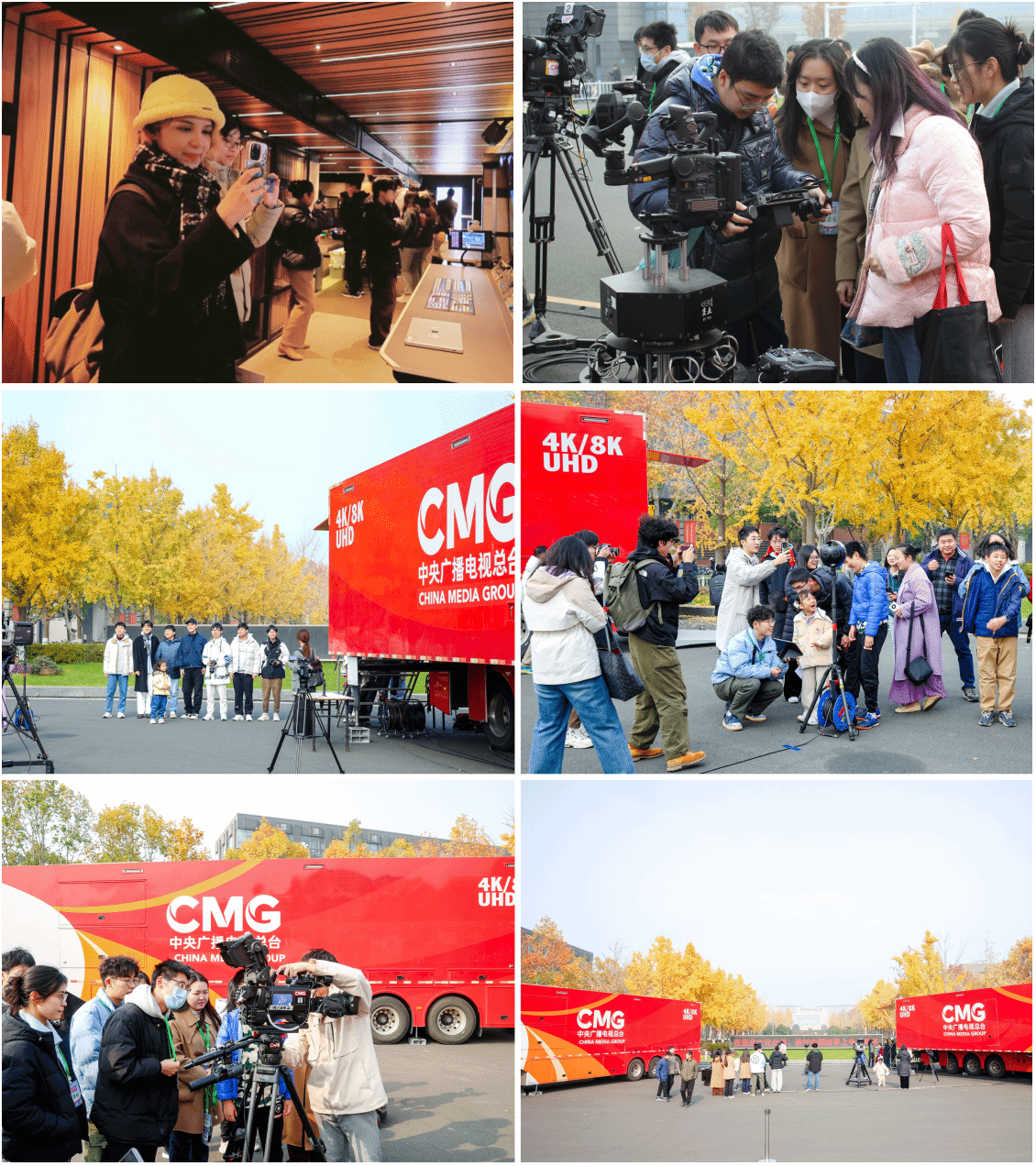 总台超高清转播车成为了凯发师生的热门打卡景点。校园风景、师生肖像通过摄像机登上总台8K超高清大屏。在工作人员的带领和讲解下,师生走进转播车,亲身体验导播、摄像等工作,见证了总台一线新闻工作者用心讲好中国故事、向世界展示中国精彩的过程。大家纷纷表示,通过本次活动对传媒技术和传媒文化有了更加深刻的理解,期待未来有机会接触更多前沿科技和文化艺术。