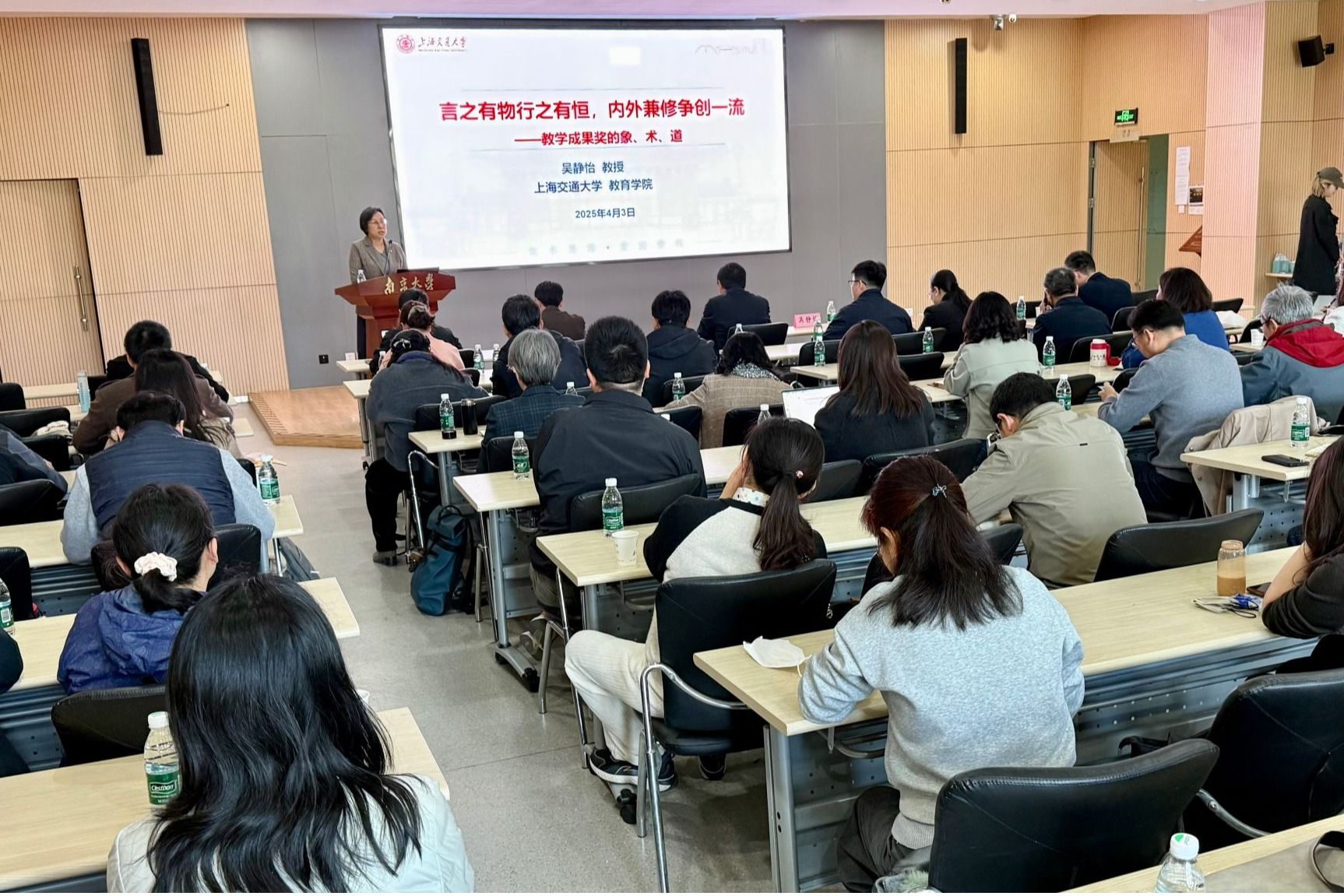 吴静怡教授以《言之有物行之有恒,内外兼修争创一流——教学成果奖的象、术、道》为题,全面解读了教学成果奖的基本情况与申报流程,结合实际案例对成果培育路径、材料撰写与准备等进行了详细的介绍。她指出,优秀教学成果奖培育是循序渐进、坚持不懈的过程,要立足于教育教学改革实际,注重育人实效;要加强前瞻规划,精准定位方向,实施全链条把关;要基于当前人才需求的变化,深入研究,着眼未来社会,探寻能够引领学生应对未来的育人方式方法。