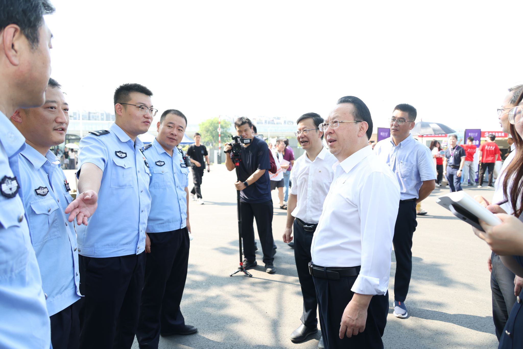 栖霞公安分局的民警坚守迎新现场,为迎新工作保驾护航。谭铁牛衷心地感谢他们为营造安全、安稳、安定、安宁的校园环境作出的重要贡献。他指出,开学季人流量较大,要在守好校园大门的同时,更好地展示大学的形象和文化。