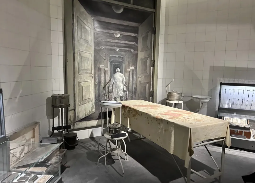 △陈列馆内还原活体解剖手术台场景。来源:网友@是林多多阿