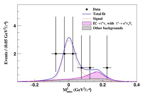 标准模型中,奇粲介子的纯轻衰变被认为是初始的粲夸克和奇异夸克湮灭产生一个虚W玻色子,随后衰变为一个轻子和一个中微子。实验研究这些衰变过程可以对格点量子色动力学的计算及夸克混合矩阵的幺正性进行检验。此外,通过对奇粲介子衰变到不同代轻子的分支比进行测量,可以对轻子普适性理论进行验证。目前,针对基态奇粲介子(如)的弱衰变,已开展了大量的理论和实验研究,对标准模型进行了精确的验证。但是对于激发态奇粲介子(如),由于其电磁衰变过程占主导,其弱衰变分支比量级仅有10-5,之前尚未有其他实验报导。但作为矢量介子,纯轻衰变吸引人的地方在于其不受螺旋度压低的影响。