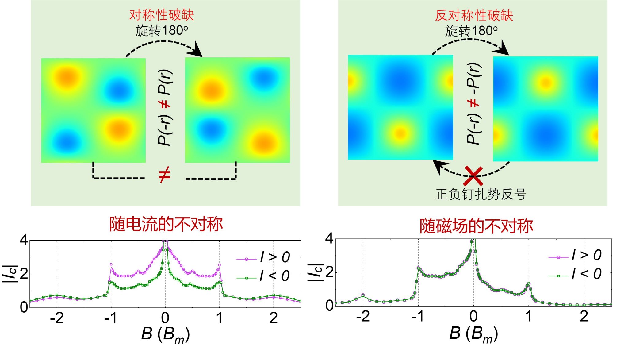 图2:通过空间反演对称性破缺和反对称性破缺实现的非常规超导二极管效应