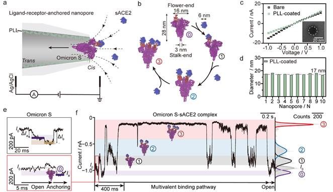 图1. 配体-受体锚定纳米孔道单分子电化学分析实时追踪多价相互作用.
