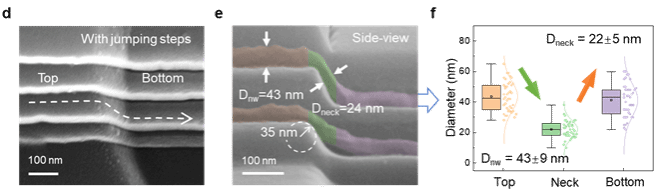 图2 基于颈缩硅纳米线的高性能晶体管器件。