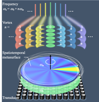 近日,凯发k8官网物理学院声学研究所刘晓峻教授与程营教授课题组在声学超材料领域取得了重要进展。研究团队成功设计并制备了一种基于旋转多普勒效应的声学时空超表面,实现了声学涡旋频率梳,并将其应用于声学图像处理器件的构建。