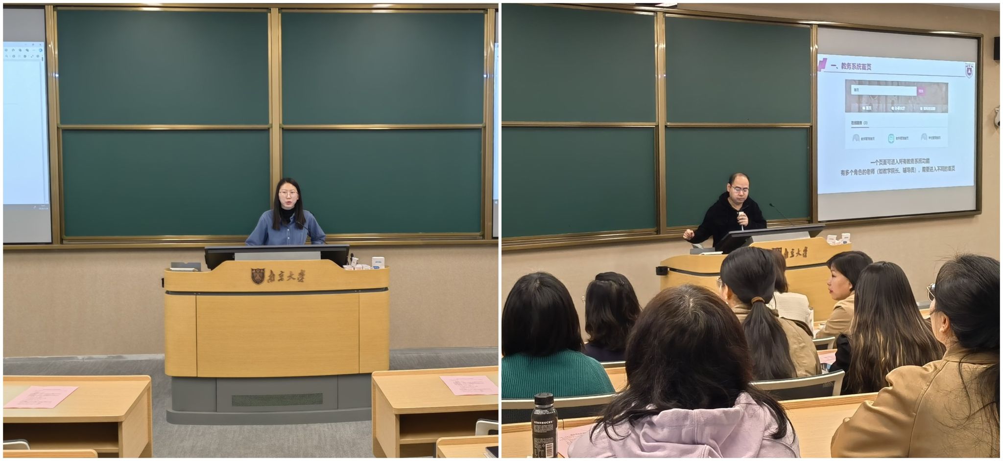教学运行服务中心张源老师、肖海珊老师分别介绍了新教务系统的各项功能和操作方法以及学业预警系统操作指南。