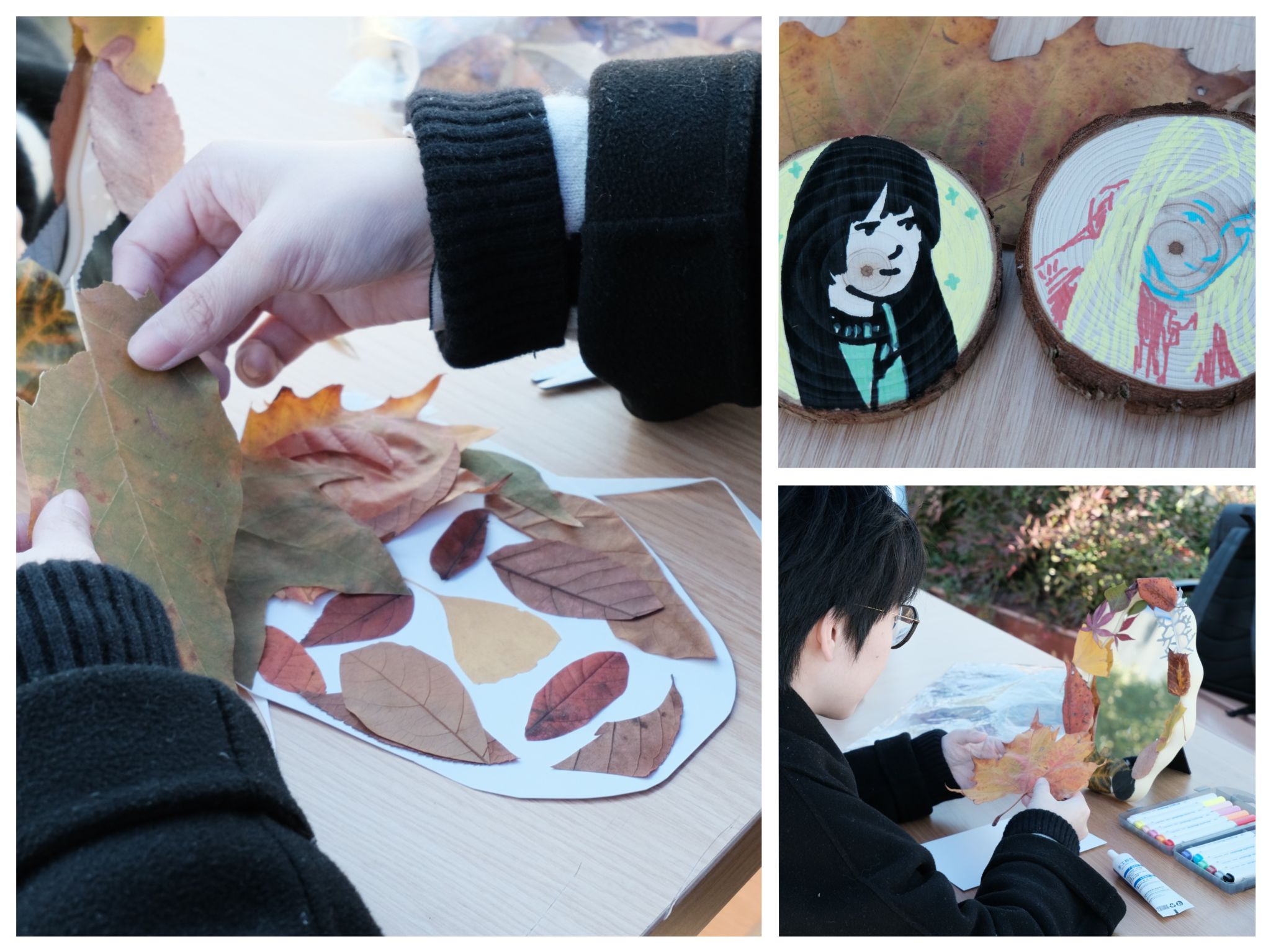 在“树叶自画像”展台区,参与者们将自然融入艺术,将手工与个人表达相结合,利用树叶拼贴和彩笔描绘的方法,刻画抽象但不失童趣的肖像。参与者在自然的纹理中发现属于自己的故事,用树叶书写自我,让作品既是一件自然艺术品,又是一段自我与自然融合的艺术表达。
