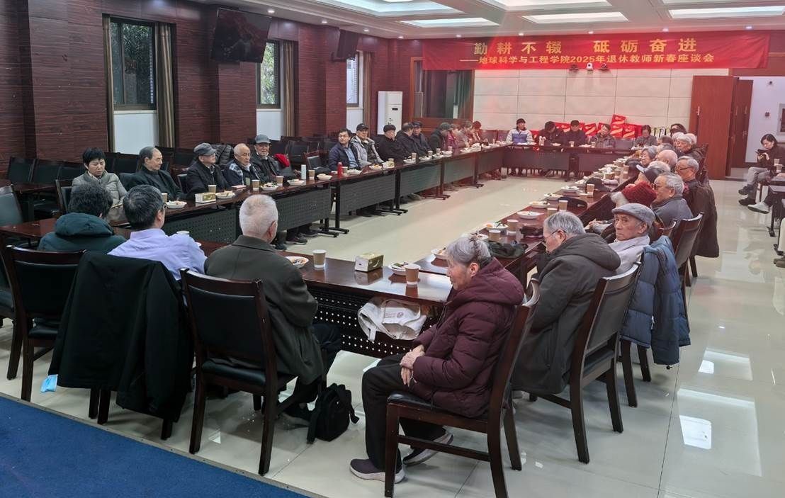 1月13日下午,地球科学与工程学院2025年“勤耕不辍 砥砺奋进”退休教师新春座谈会在鼓楼校区知行楼一楼报告厅举行。学院党委书记董婷、院长陈天宇与离退休教职工40余人欢聚一堂、共叙情谊、共话新年愿景。会议由院办主任汤晓茜主持。