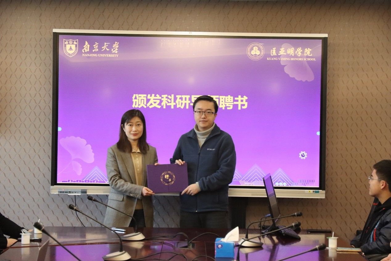 为进一步推动科研育人,助力学院拔尖创新人才的培养,本次午餐会举行了科研导师聘任仪式。周媛为杜灵杰颁发科研导师聘书。